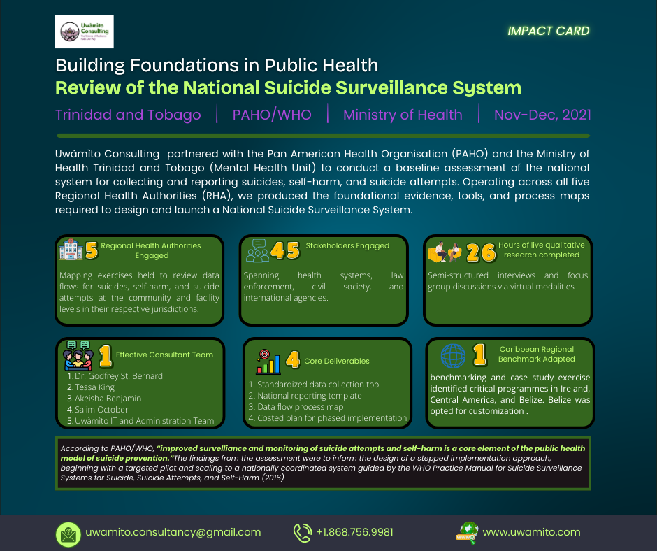 I am Margarita Elliot, CEO of Uwàmìto Consulting, a Caribbean-based strategic consulting firm serving government ministries, NGOs, development agencies, and business leaders. We transform systemic challenges into strategic advantages, building the leadership capacity and operational readiness your entity needs to create lasting, measurable impact.